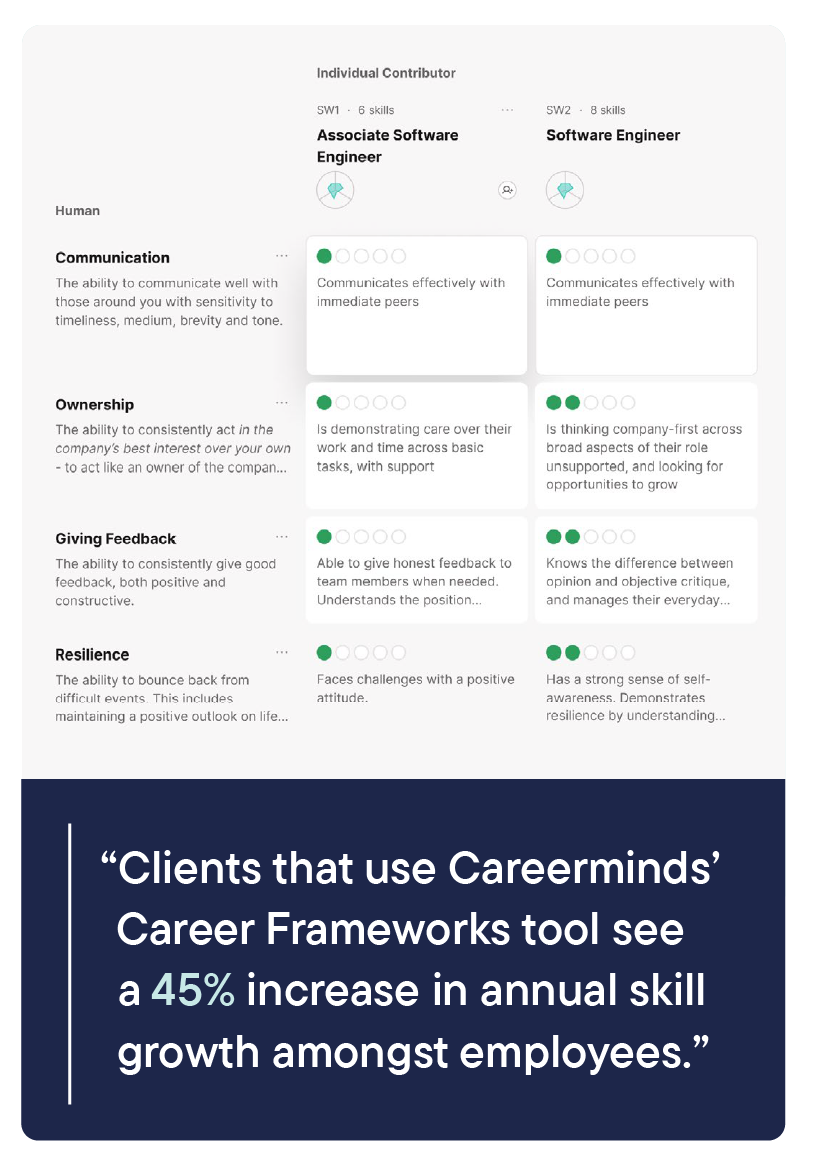 We support organizations at every stage of AI-driven workforce evolution, from building career frameworks and talent development programs to career transition support. To discuss how your company can build a more resilient workforce, speak with a Careerminds expert.
